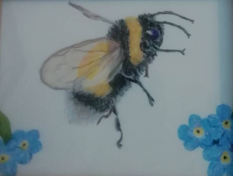 This was created in the spring of 2024. A cute miniature painted in pastel on A5 pastelmat. It featured in my first solo exhibition in February and March 2025, in Kidderminster. It was also apart of the Annual Open Show Exhibition at the Open Gallery in Halifax in June 2025. Inspired by the importance of bees 🐝 and a gift of forget-me-nots given to me for mothers day.