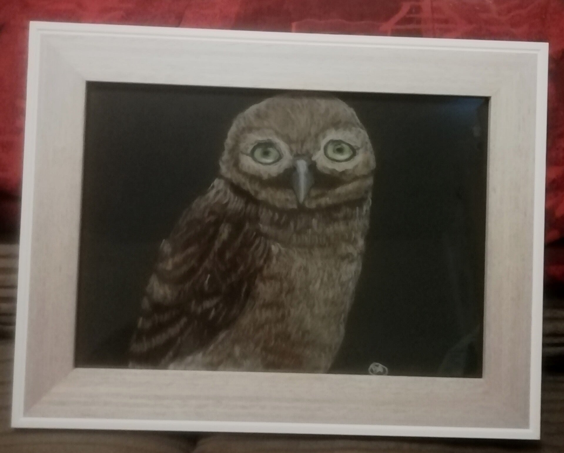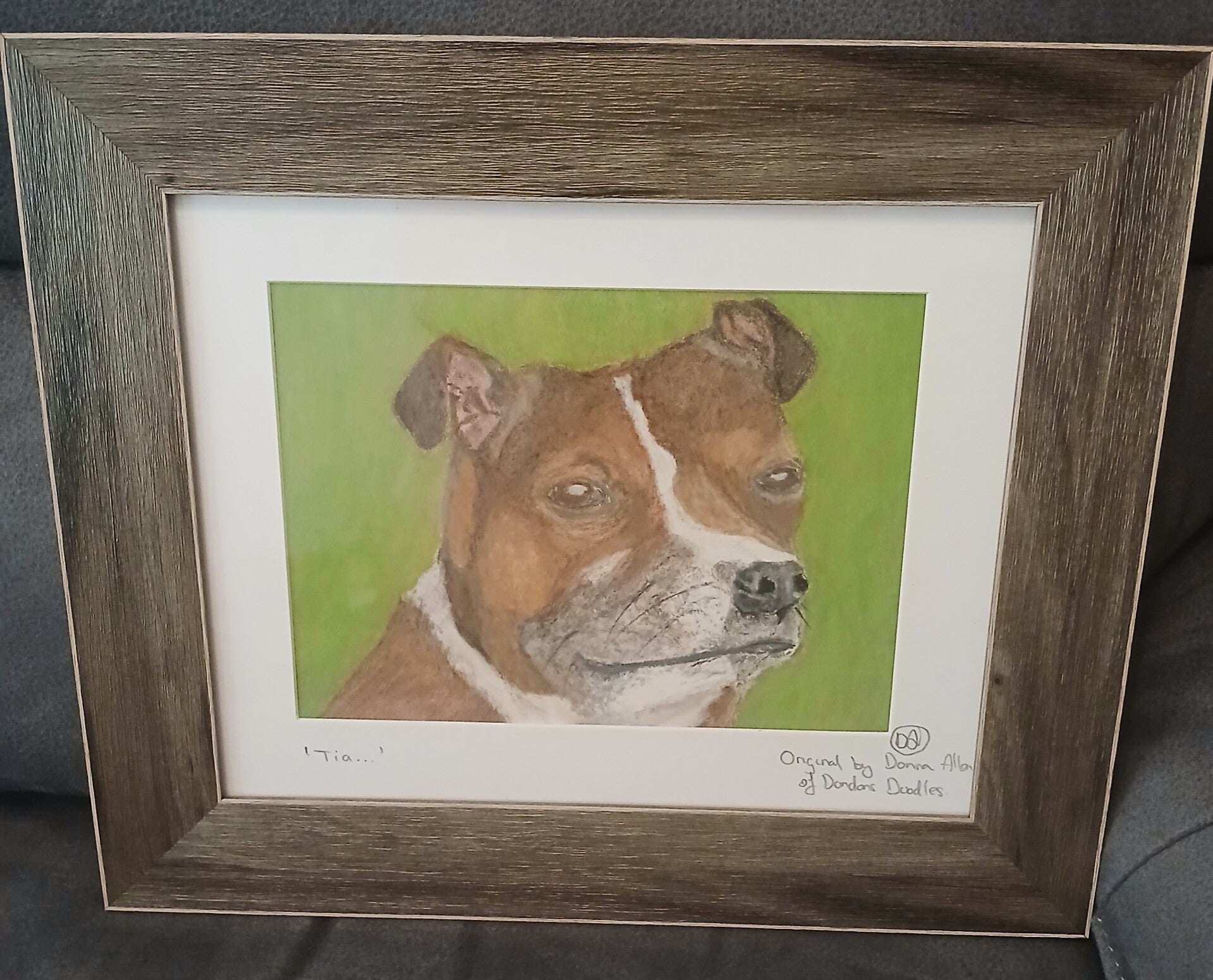 Pastel on 210gsm paper and then professionally framed with a frame of your choice. This is my latest size and have found this paper holds the pastel well. Suitable for pet/wildlife portraits, although not limited to, as the possibilities are endless. This is becoming popular.